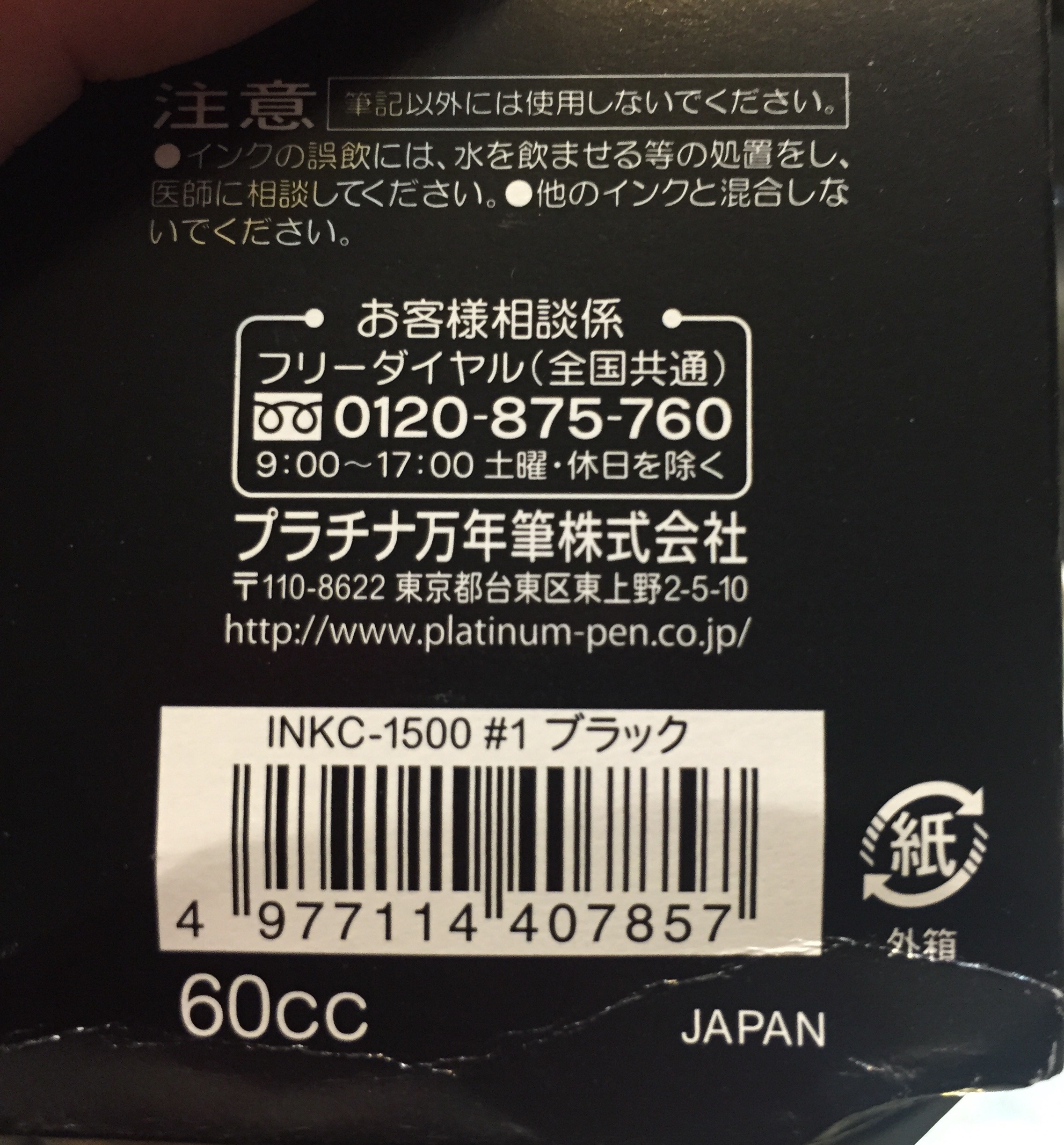Your ink should have INKC 1500 on it. Beware of the one with 1200 on it. It’s not waterproof. Now to get some. De Artmentris (sp?) document ink. Also supposed to be waterproof and comes in colors!!