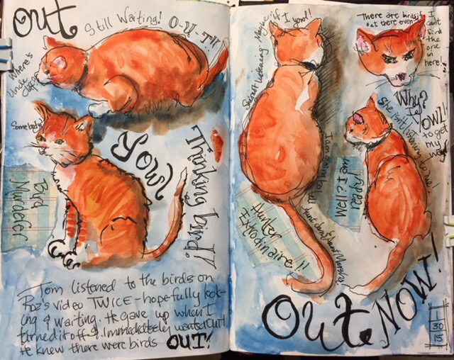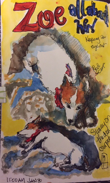 Then I drew the Raffe…hes my favorite…hard not to love them. My toy giraffe is about 8 inches tall!! I drew him from various views like I was going to do with our Dr. Sketchys model. Rather like the effect. Then I wrote Giraffe all over the place. I can’t seem to stop writing on my sketches lately.