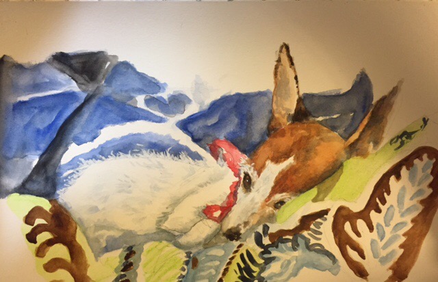 Here’s another one of Zoe done w watercolor on Strathmore 500. I used the water brush. Lots of blotchy washes. Not a good look!! I really think it was the watercolor brush. Hard to get a big wash going with drips of water.
