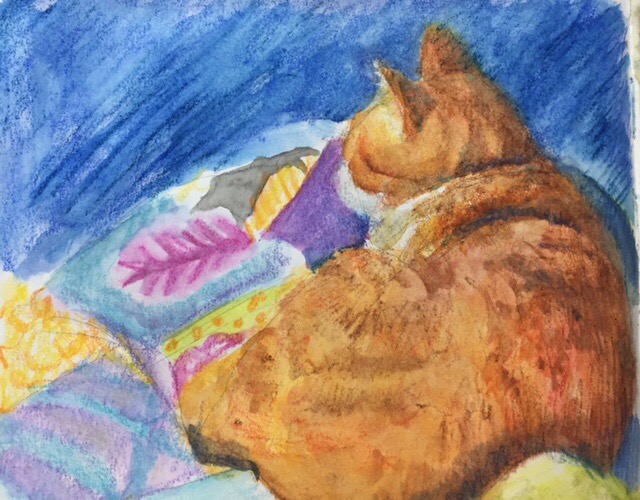 Tom insisted on sitting on my lap most of last night. Have you ever tried to draw and paint with a determined cat on your lap?! Groan!