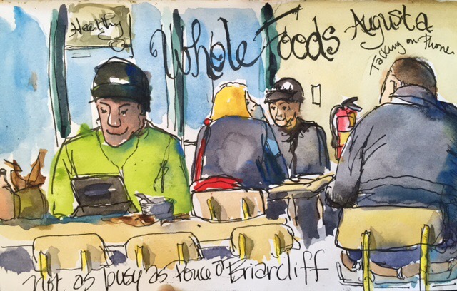 Decided I would post some of the sketches that for one reason or another I never quite got around to posting. These were done at Whiole Foods in the last few weeks. I really liked the guys green shirt!!