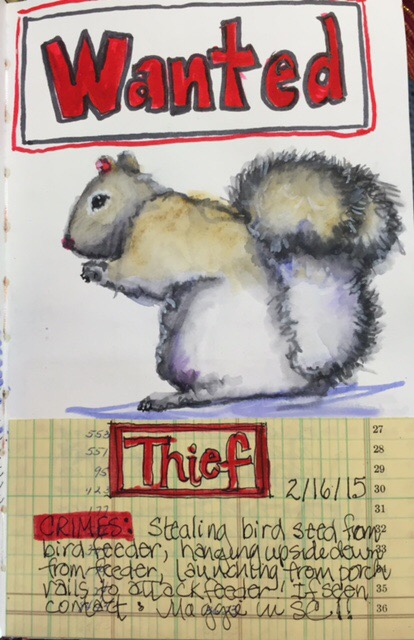 One of them was posing on the deck outside the window. I caught him actually behaving. Later on when one of them was hanging off the feeder upside down I decided to turn it into a Wanted poster after all they are thieves aren’t they?! So naughty.