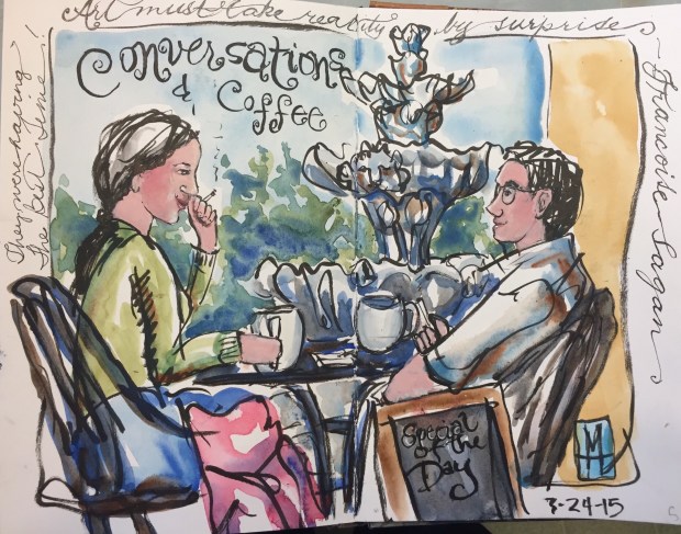 Art before lunch. Very fast sketch from a distance. Think I was more into drawing the fountain than the couple who were having the best conversation outside at the inner bean while smoking and enjoying the weather.