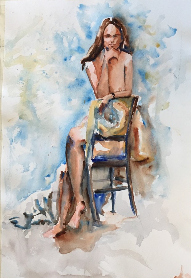 Erica is a lovely young lady. Things actually went fairly smoothly today. The colors I used were DS Quin Coral which makes beautiful skin, cerulean, burnt sienna ultramarine blue cobalt and yellow ochre. And that’s it. Six colors!!