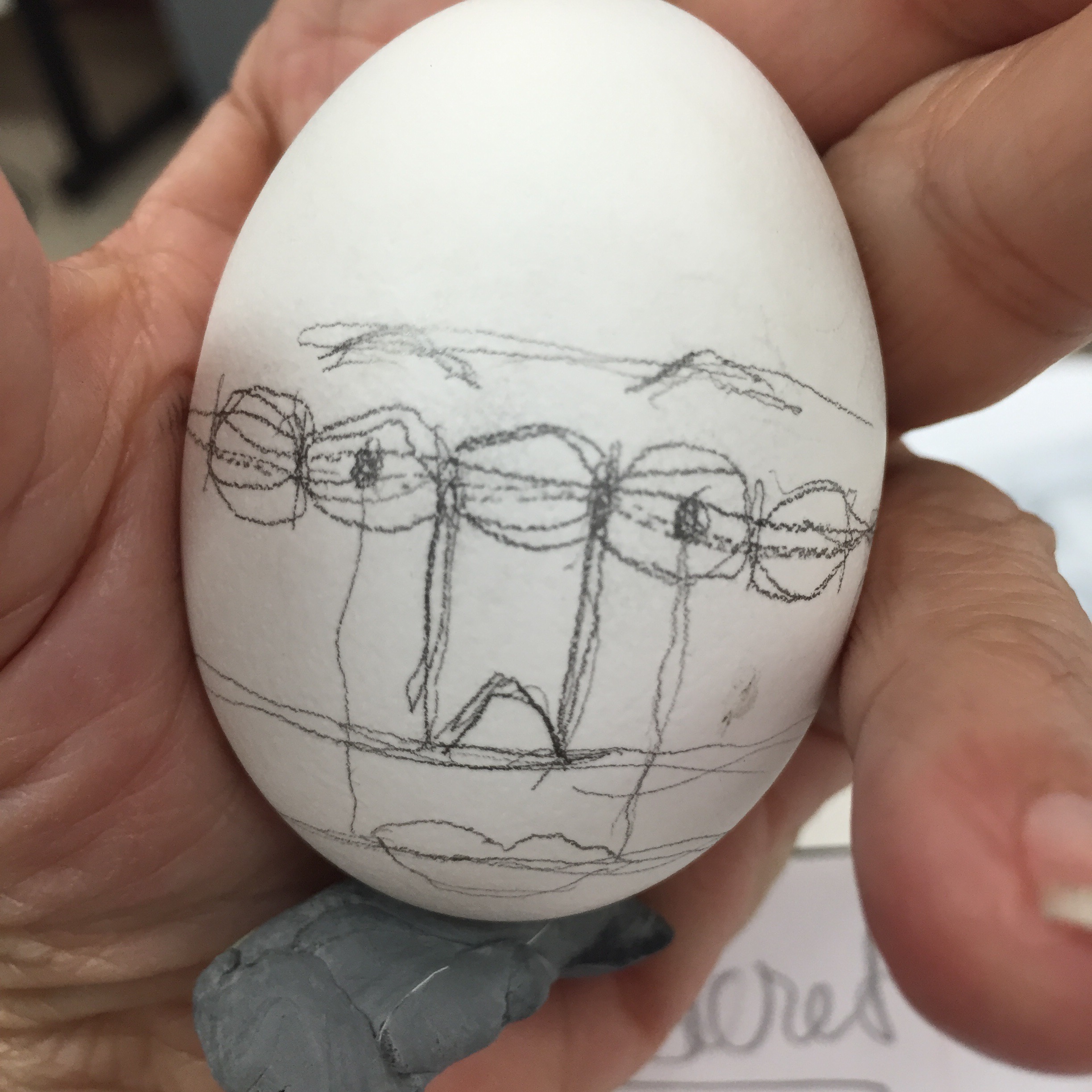 The egg. Did you know if you draw on a BOILED egg or a plastic one like this it mimics the perspective of your head as it moves around up and down. Great way to teach it.