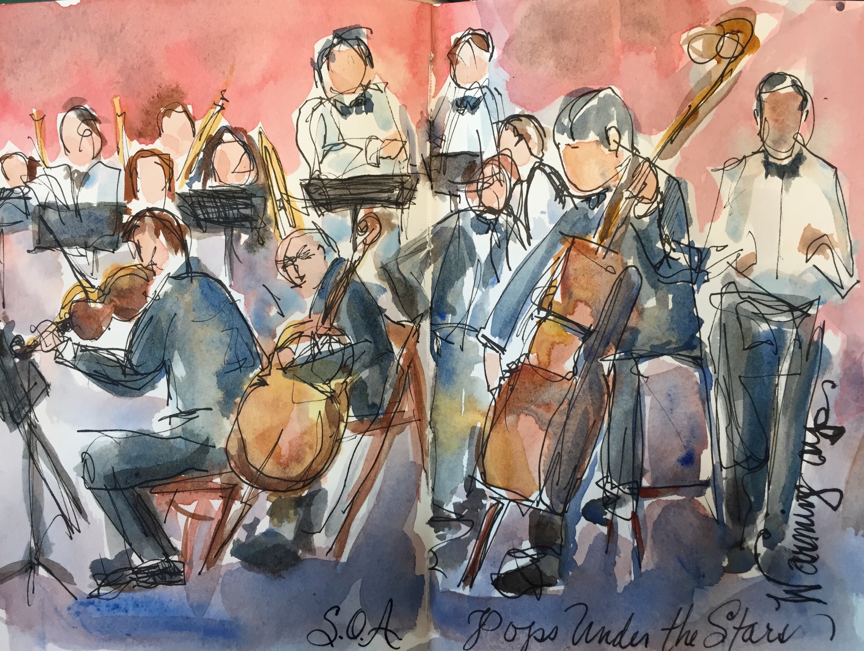 Tomorrow more Pops Under the Stars. I only drew about 30 fast sketches and half an accordion book.