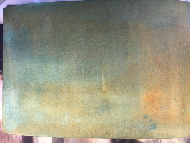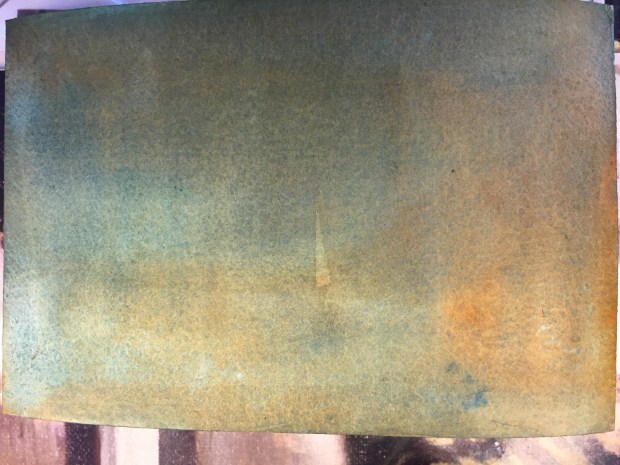 I thought you might like to see the layers I did to arrive at this strange but I think pretty background color. Just remember don’t do it in a journal because it may leak thru. The above rectangle is 8 washes of different colors. The one with Maestro Z is 16 washes.