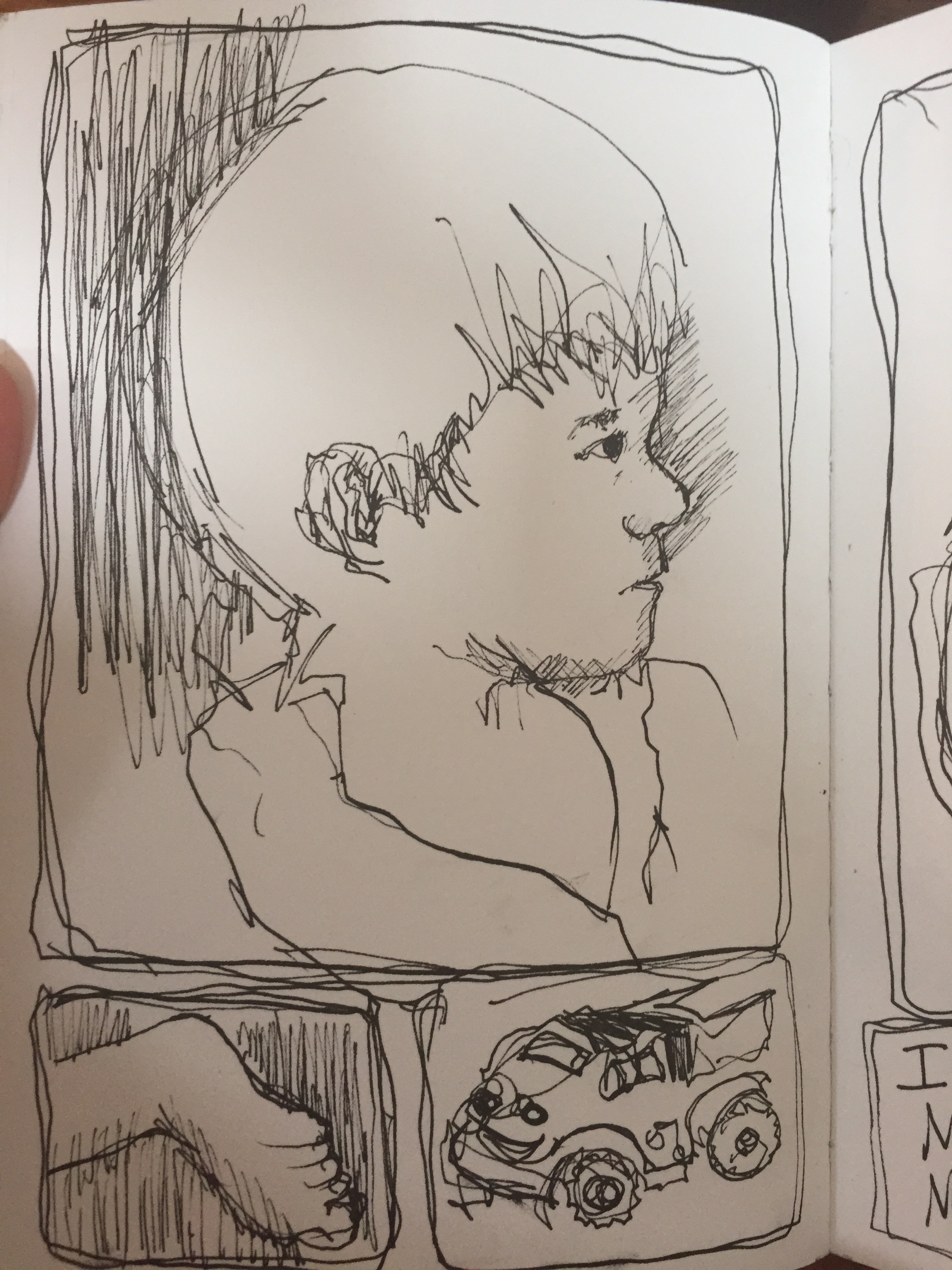 Here’s another one. The tiny feet are so sweet but hard to draw. I was using a sort of contour drawing to do all these not a searching sketchy line with my Noodle Creaper Ahab. Love that pen.