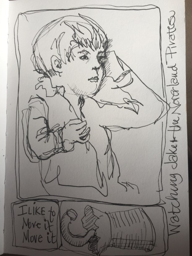 Henry loves Jake and the Neverland Pirates and sits fairly still while watching them.