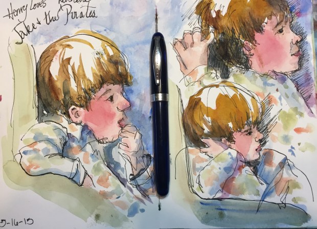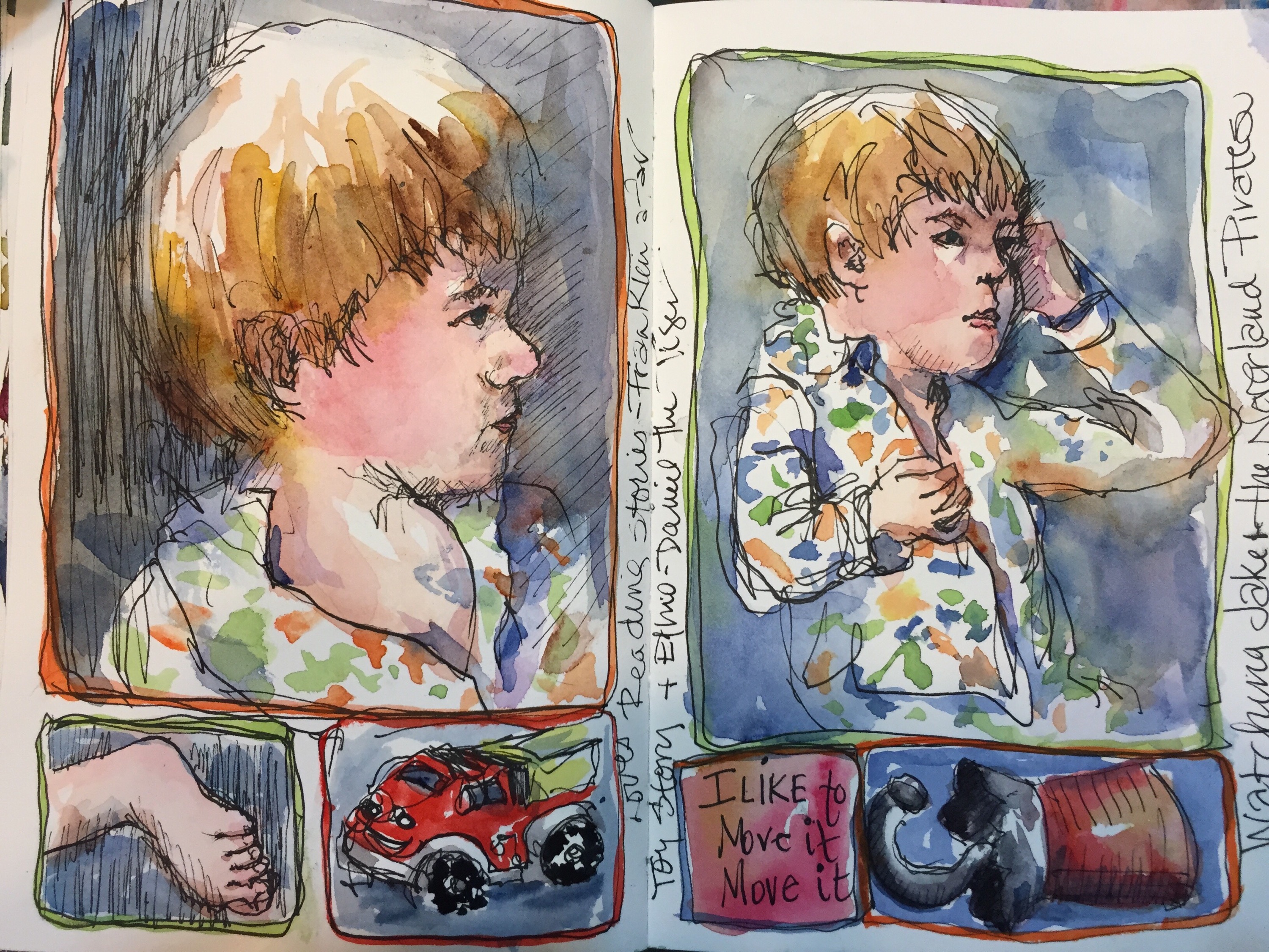 Henry was so into Jake and the Neverland Pirates he hardly moved. These are stil quick sketches because you always think a child will move especially Henry. This is the only time he holds still when hes awake.
