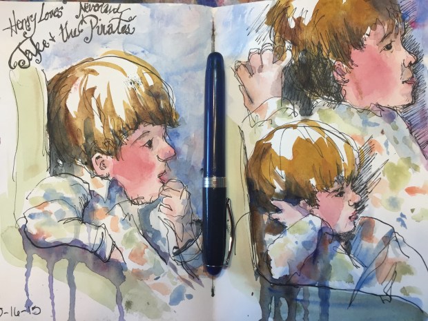 Noodler creaper Ahab loaded with Carbon Platinum black ink in my Strathmore 500 mixed media. Really not happy with the way it’s leaking watercolor washes along the binding and ruining pages.
