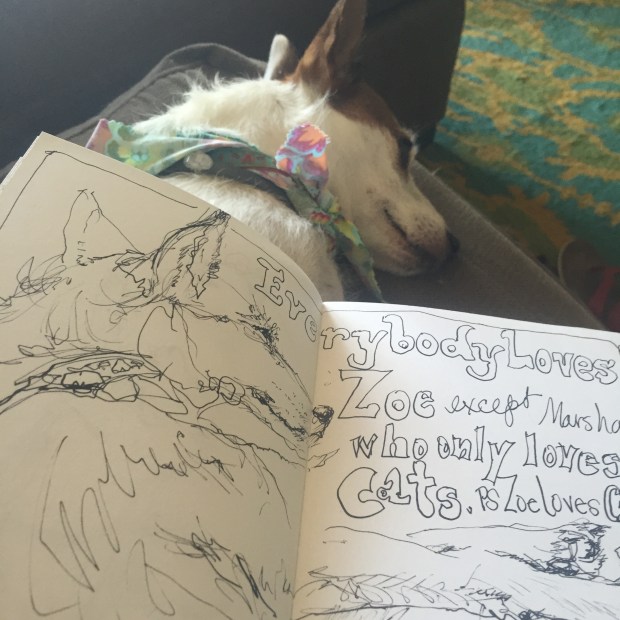 Zoe loves to snuggle. Drew this while we were watching CBS Sunday morning. Painted it while listening to Super Soul Sunday my two favorite shows. Noodler Creaper Ahab in my Stillman and Birn Alpha. Wish I had bought a zeta. The paper buckles a lot with washes but will flatten out somewhat when the book is closed. Also the paper does not let you live color without some pilling. No book is perfect but S&B tries hard.