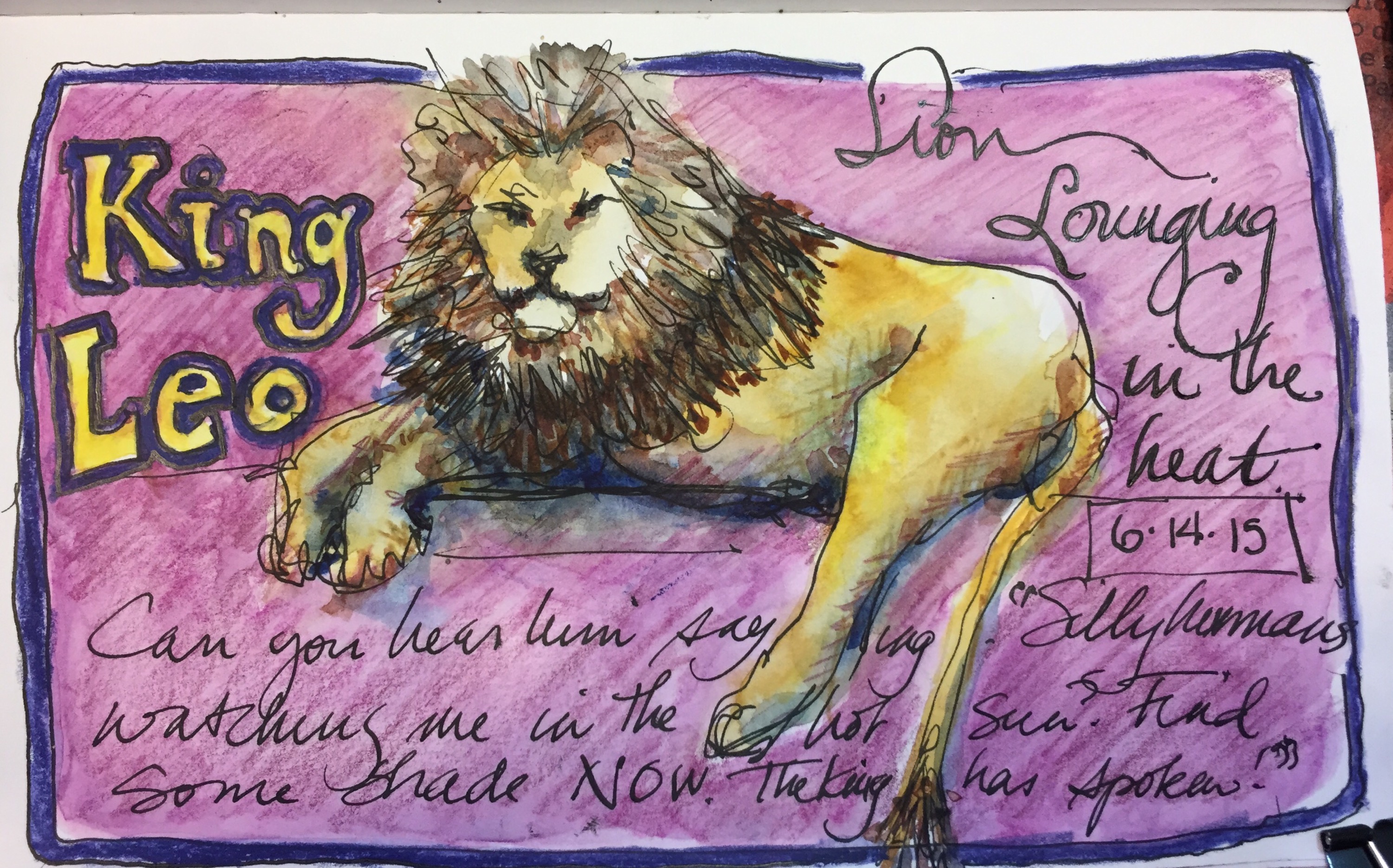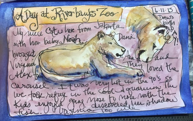 I went to Riverbanks Zoo last Thursday with my extended family. While I was waiting I drew some of the animals and the carousel. Finally gettin around to painting them. Today’s its the lion. All of the writing and sketching was done while I was at the zoo.