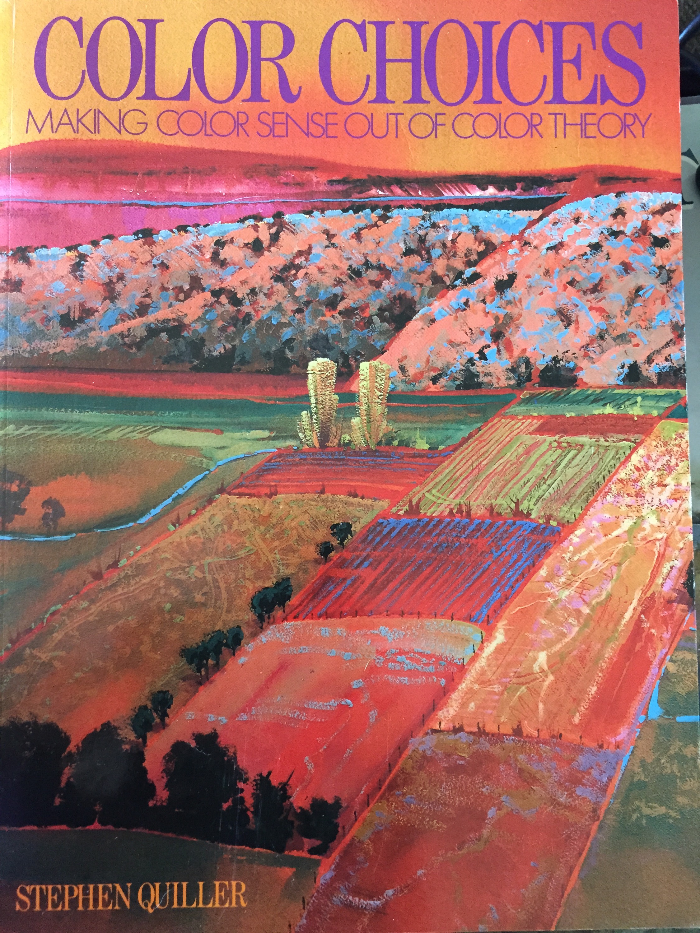 Tiring of the Orange and cerulean on journal pages I used this Stephen Quiller book to find a different color combo. Thus getting the purple and gold combo. Like the new look. Great book for color. Check it out.