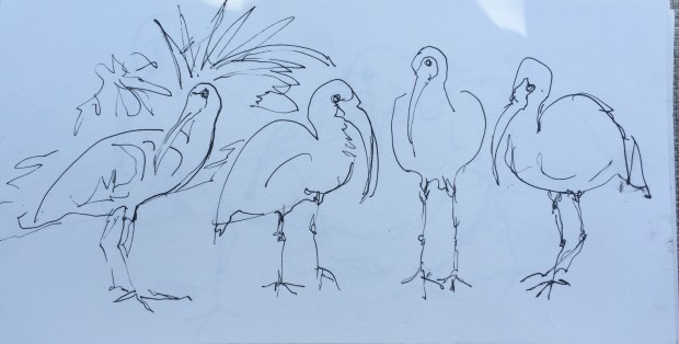 A few of the eight or so ibis sketches I did at the wildlife center last Saturday. Or was it Friday?! In Key West the days run into each other.