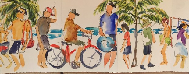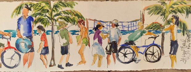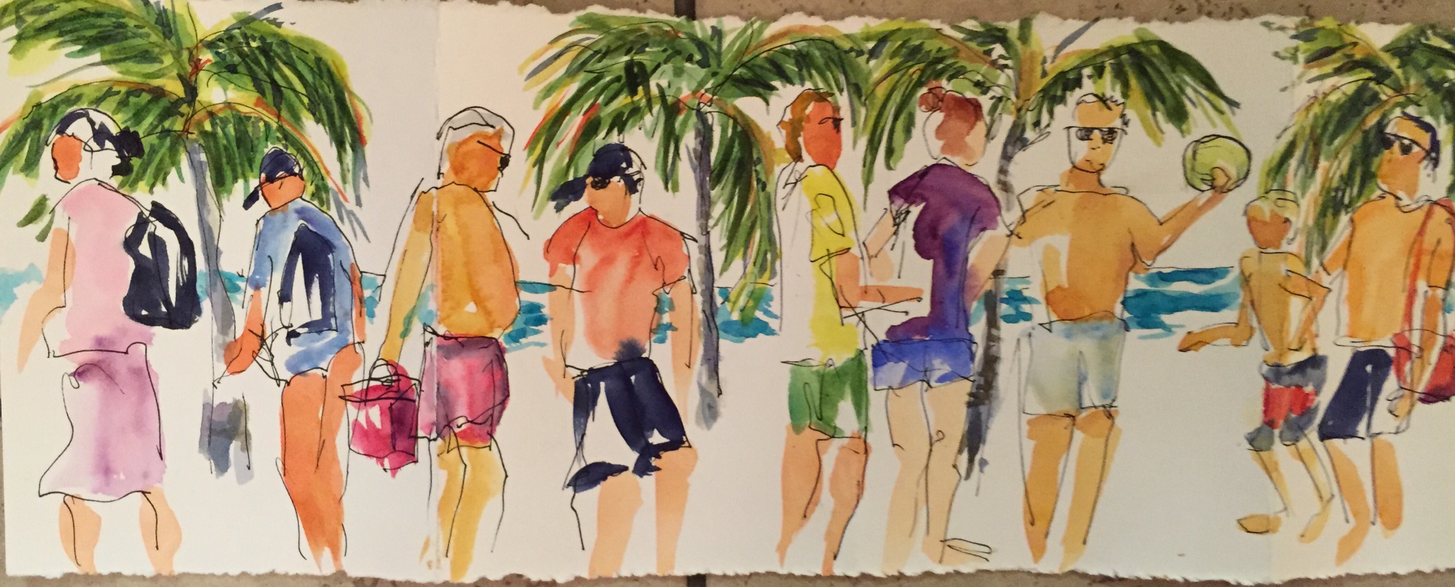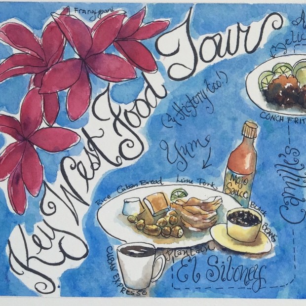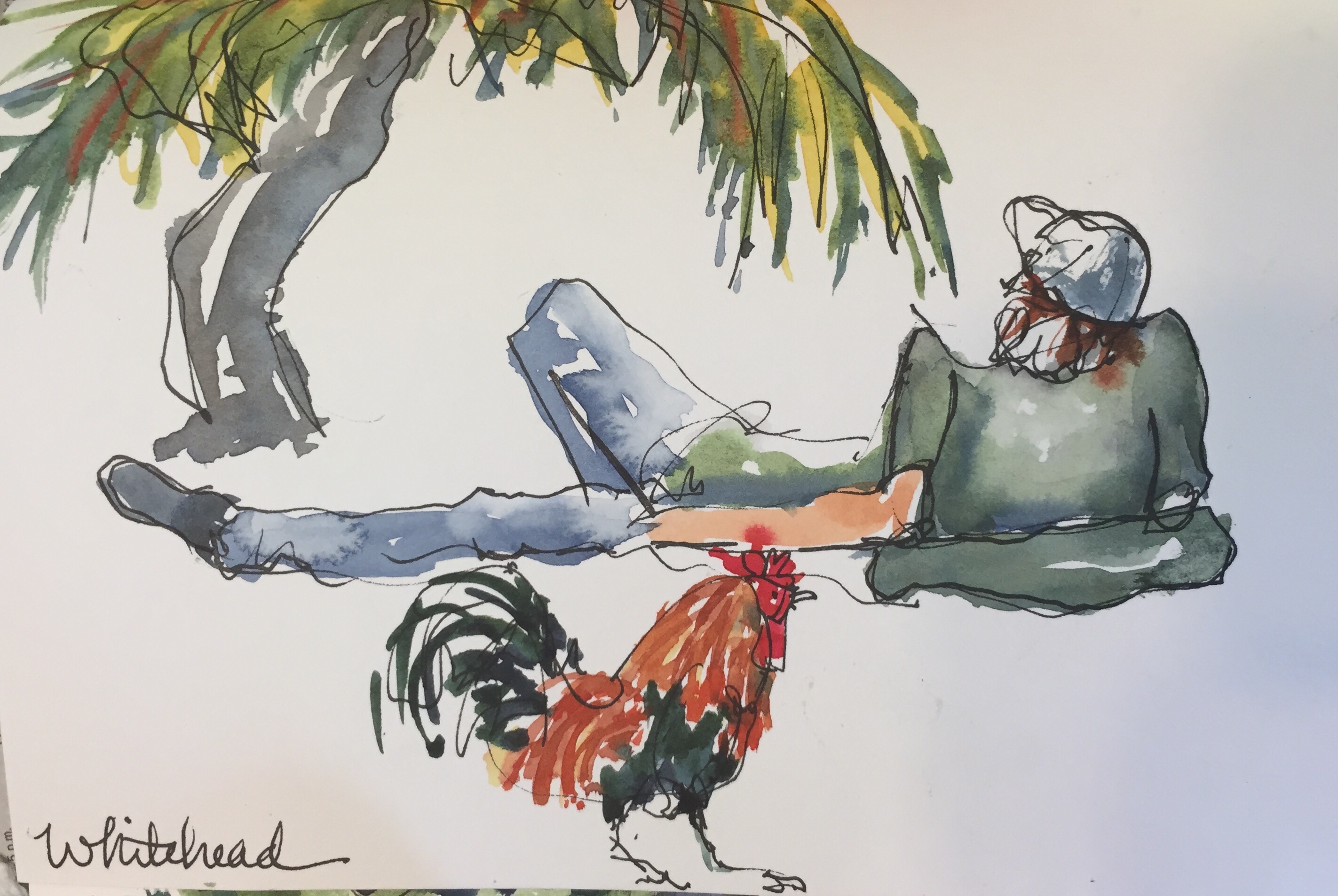 The double page in my Moleskine watercolor book. I decided they were the last double spread because they are so iconic in Key West. Literally they are everywhere behind and under almost any bush, in the parking lots, under the tables in your favorite restaurant. You can not help but fall I love with them.