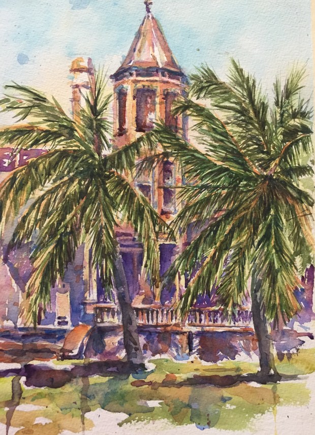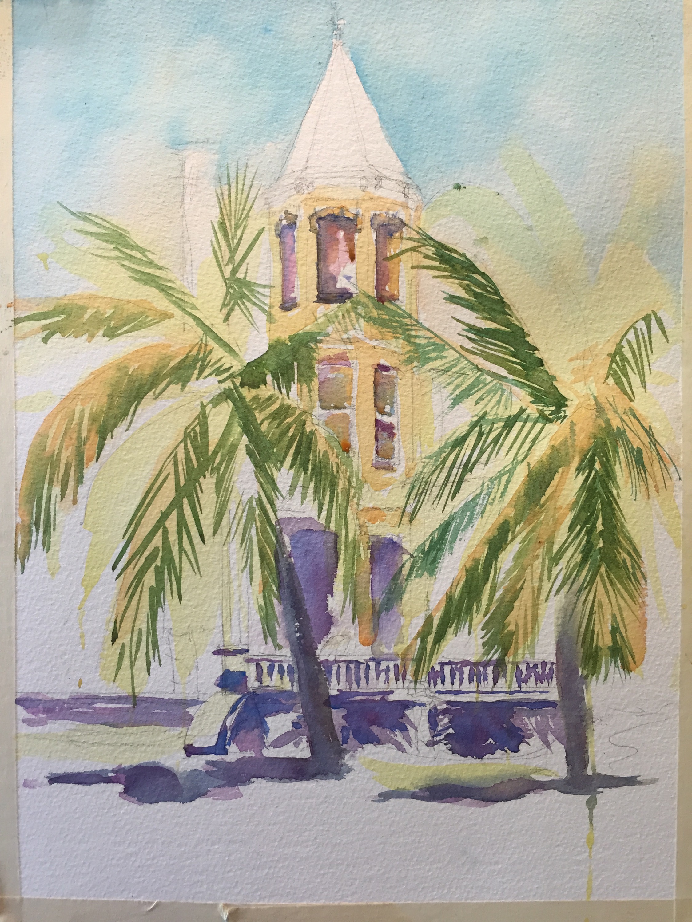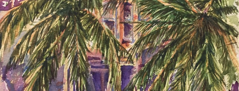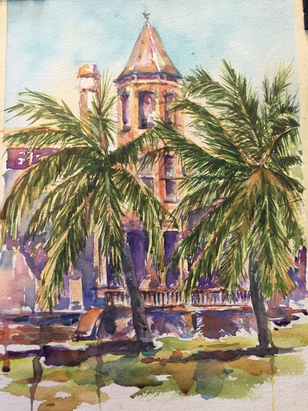 been trying to paint Palm trees again not sure how successfully. I tend to get heavy handed with them or get too heavy with the darks. Then I have to lift some of the darks. No wait ALOT of the darks. Thank goodness this is on Fabriano.