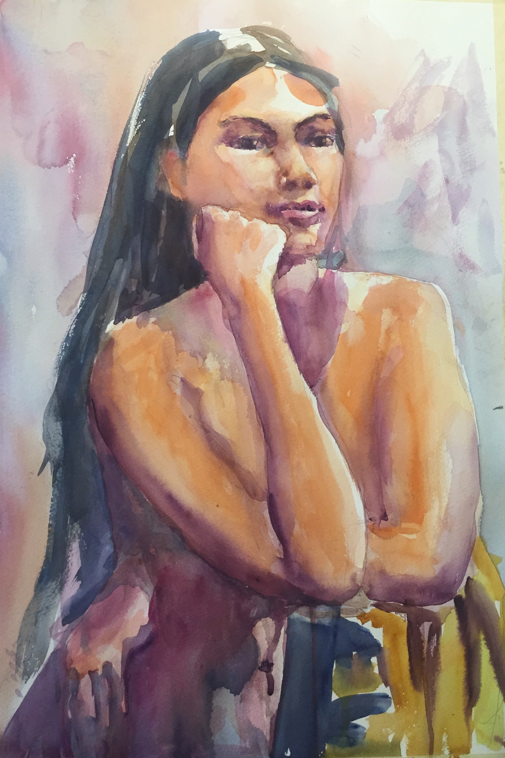 Lightened the purple around her left eye. Need to work inner nose some more. I also lightened the oranges on her left arm and her hand. She has fingers again. Thanks for reading.