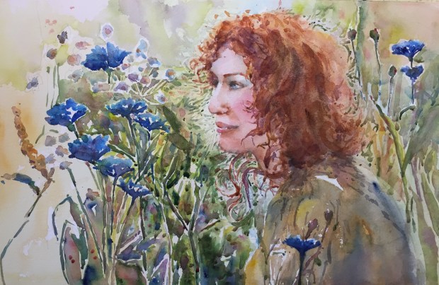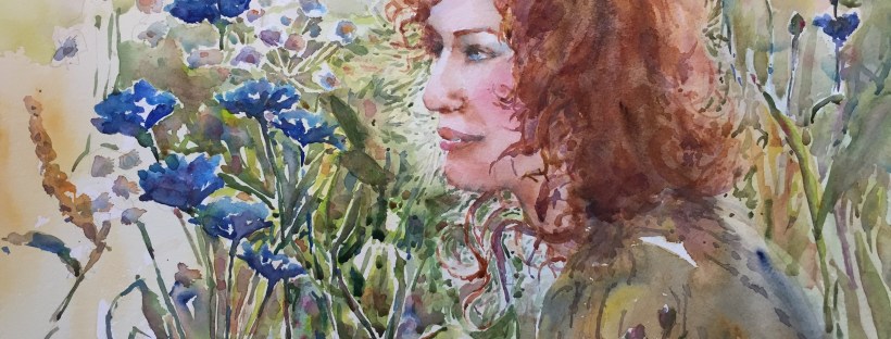 Currently seemed to be obsessed with painting girls. Making progress on the latest one. She’s big. A half sheet of 300# fabriano which is about 15×22. That’s a big watercolor.