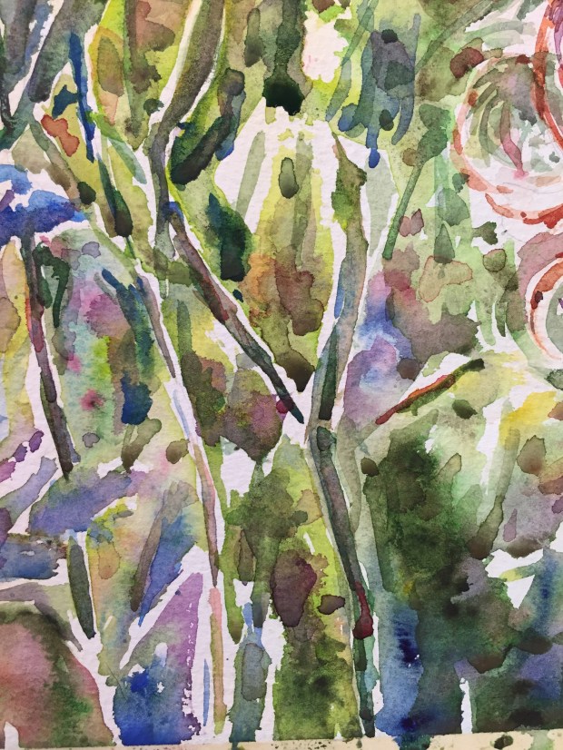 Painting the background has been a lot of fun. Colors used green apatite marine blue cobalt ultramarine cerulean mineral violet alizarin a bright yellow green.