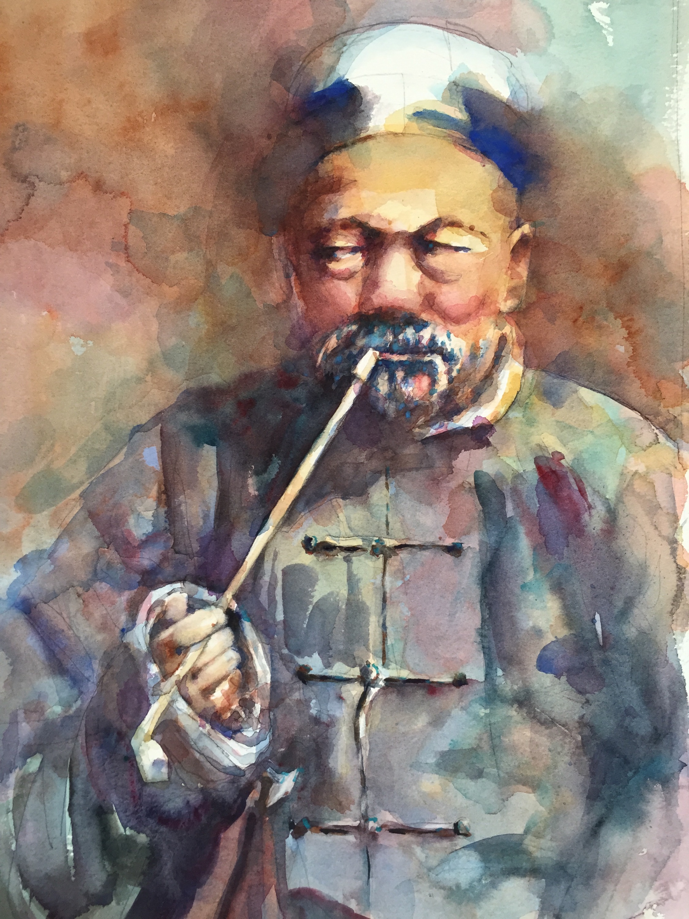 Boone 300# cold press Half Sheet 15x 22″ Another one done earlier this year. Always fun painting mustaches.