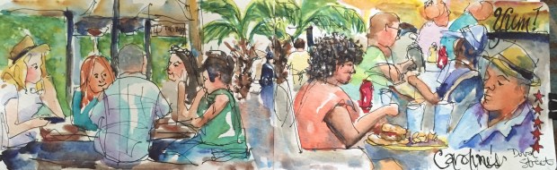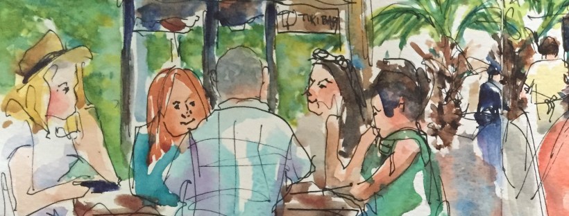 The view from our table. It was contour sketched in ink in a hurry because we had less than an hour to eat and get to our tour.