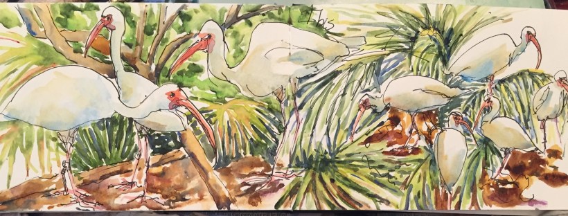 Today I went back to sketch. The birds cooperated. Once again the iguanas didn’t.