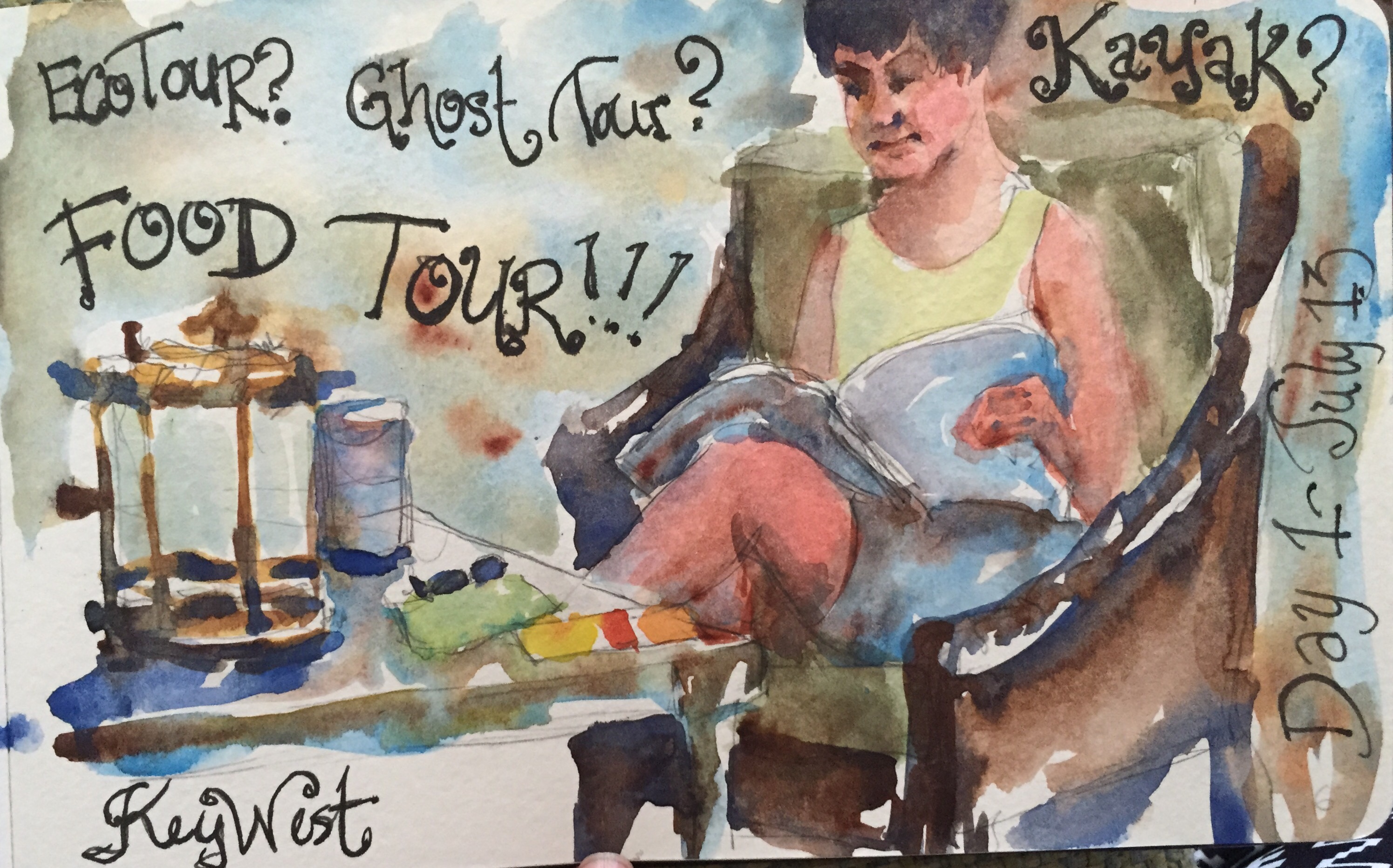 Then I came home to get to working on the commission. Could not find my full sketchbook of Key West anywhere. I needed it to make a bigger painting of one of the sketches. Thank goodness I had good photos and got busy.