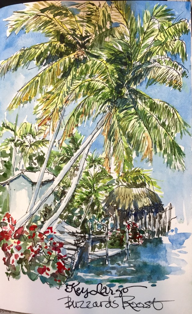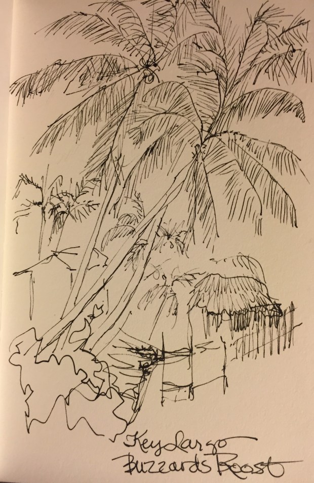 As we sadly left the Keys we made a return trip to Buzzards Roost on Key Largo. I drew this as we waited for our order to arrive. As usual the service was not super though our waitress was an overworked sweetheart (too many tables) this time but the view was still gorgeous!!!
