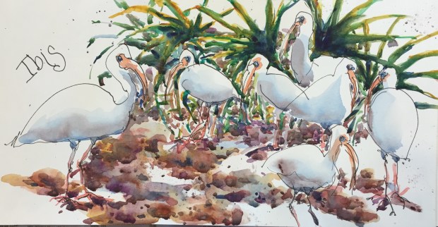 Three times is the charm they say! Wordpress keeps eating my post today. These were all drawn on site at the Key West Wildlife center. I counted at least 8-10 pages of ibis sketches.