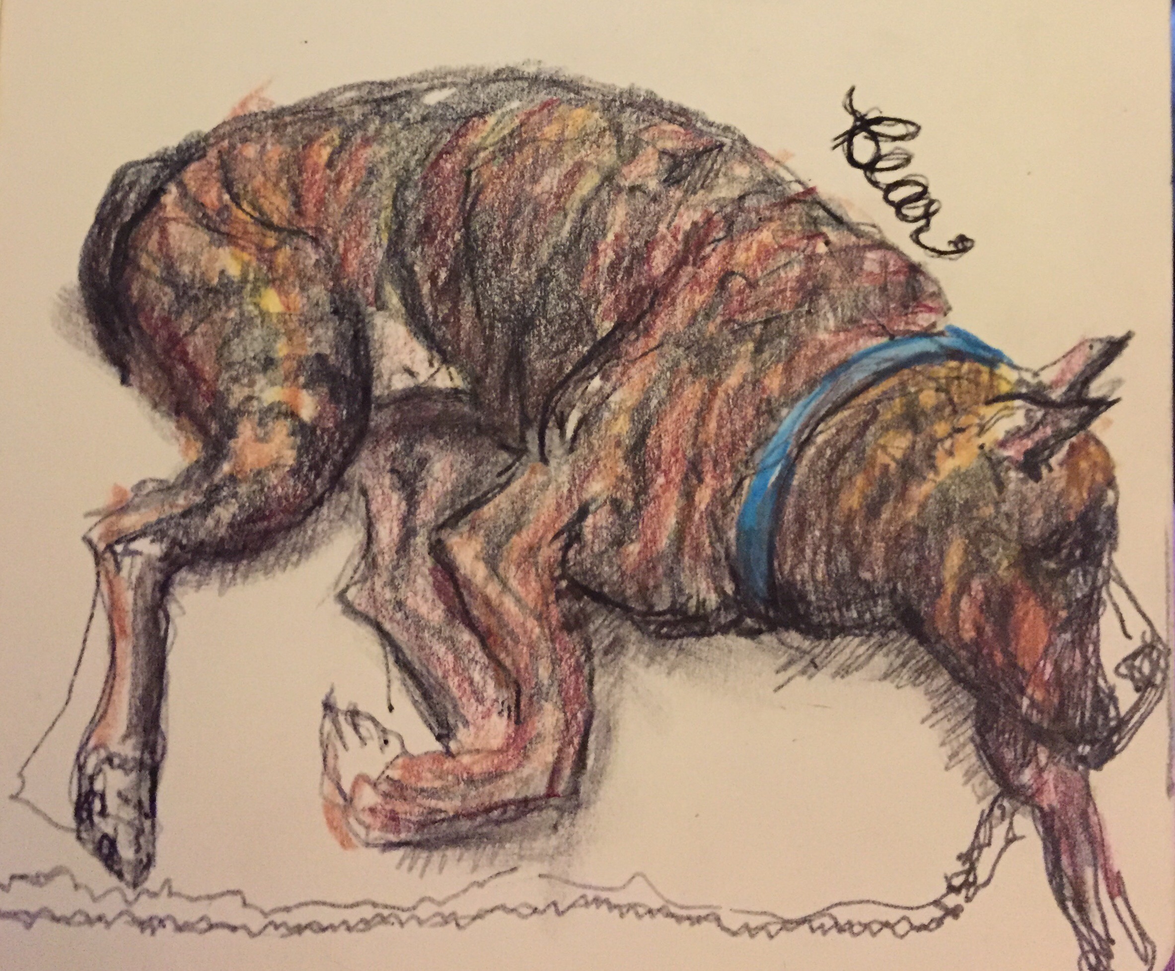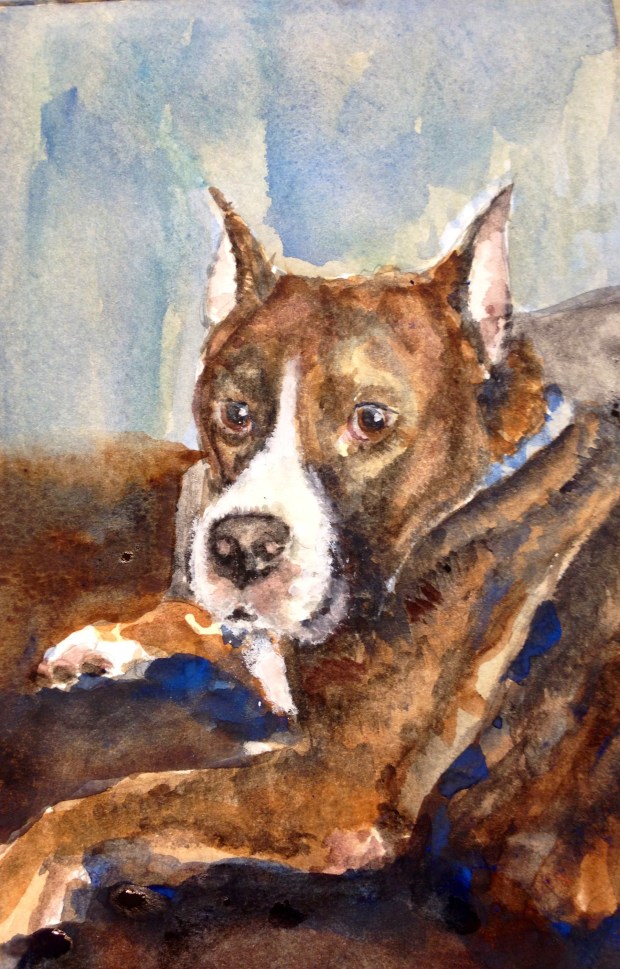 I started to draw him whenever I visited. His brindle due was always a challenge.