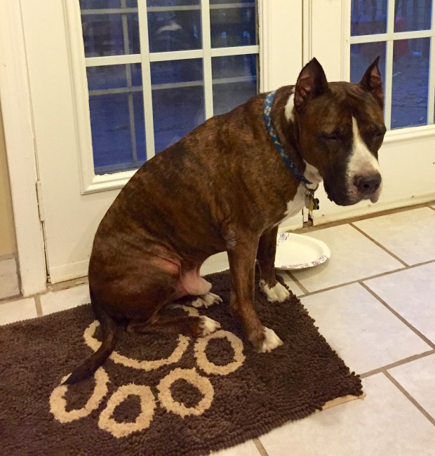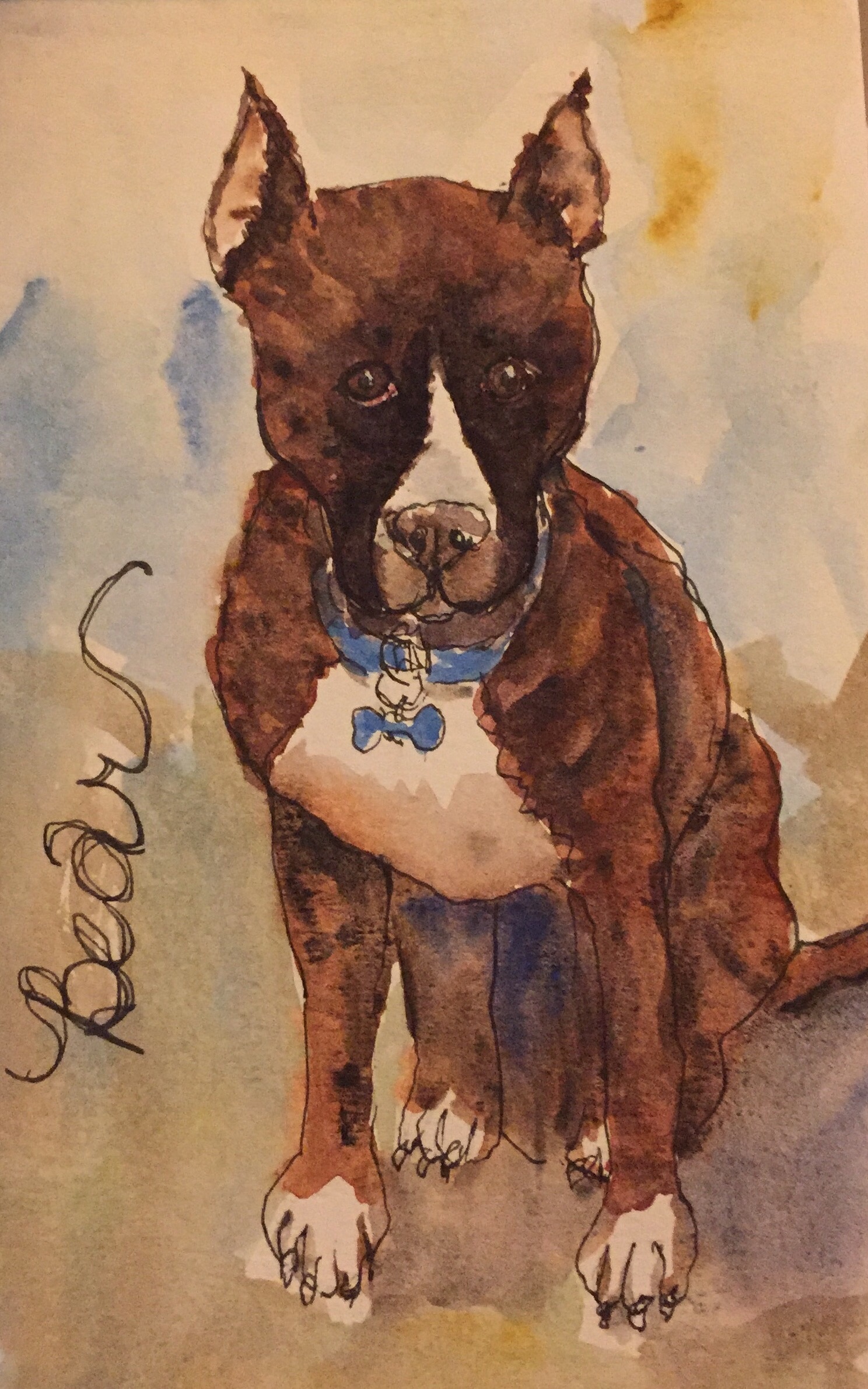 Bear was my sons sweet huge 85 lb. pit bull rescue who wandered into our lives about two years ago.