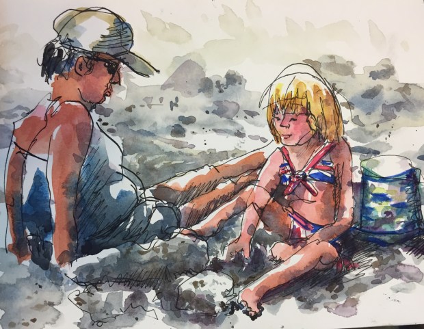 A quick sketch of a grandmother playing with her granddaughter on the Garden City beach last weekend.