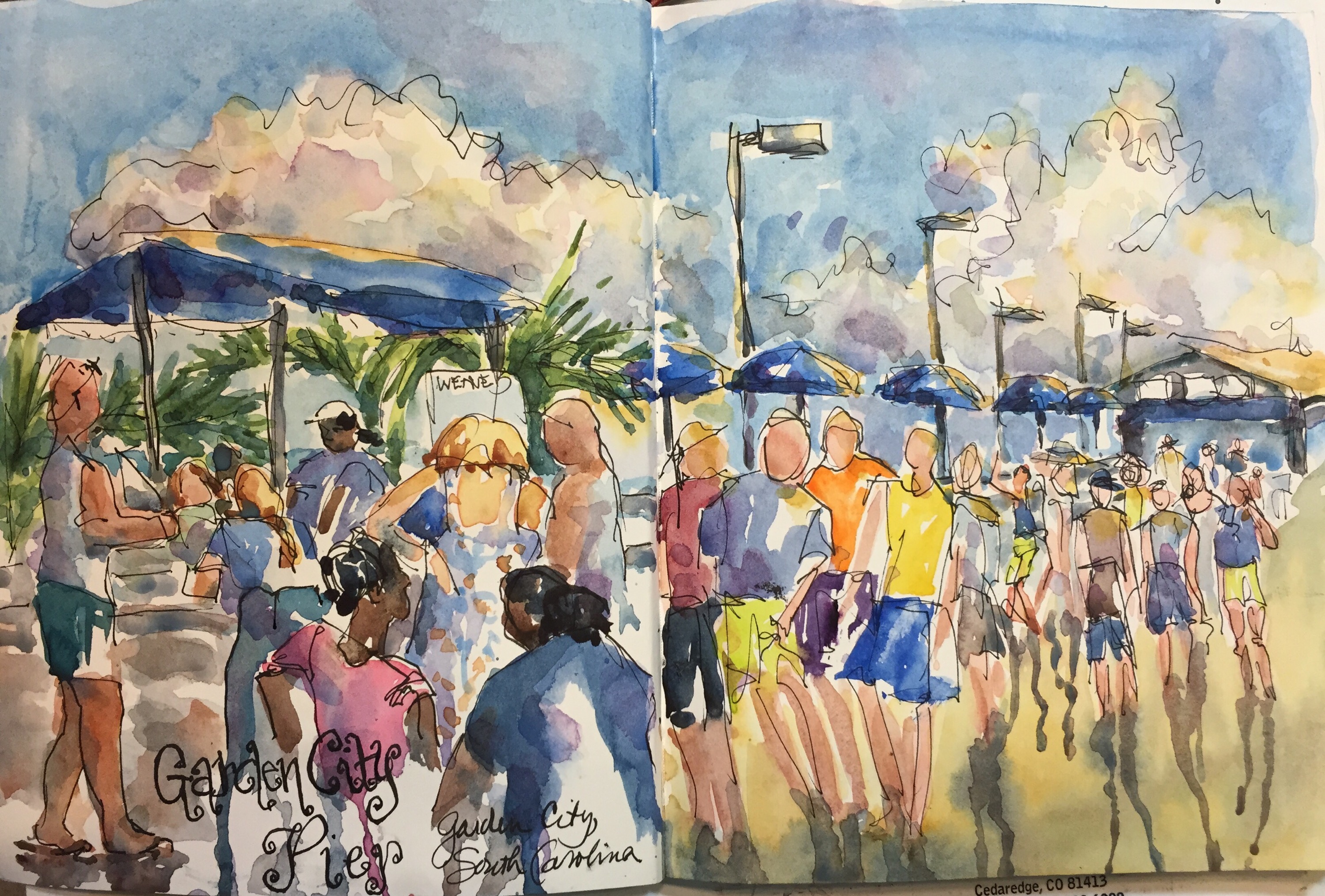 This was sketched on the pier at Garden City. A very long pier. The late evening sun glinting off the boards was turning the dock to gold.