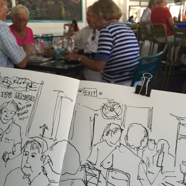 I drew this brown pelican when I was at the Key West Wildlife Center with my brush pen. Finally got around to painting him. If you wonder why he was at the center I noticed while sketching he was missing the upper bill. For lack of a way to exlain it better the part under where your nose would be. I noticed because I saw his tongue while I was drawing him. He was above my eye level.