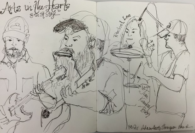 I was really pleased with the two sketches of the group performing. They were drawn as they played and sang. And No they do not hold still.