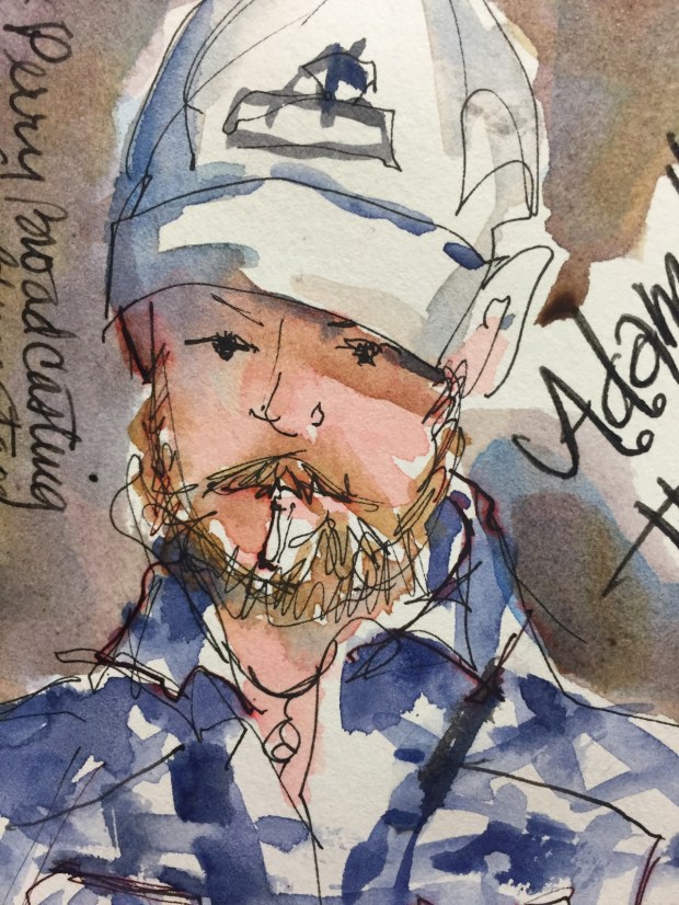 I also loved the look of this guy – an audience member. He sat not far from where we were drawing. About broke my neck while drawing him. He was such a dignified guy. Thanks goodness he didn’t catch me craning my next at him.
