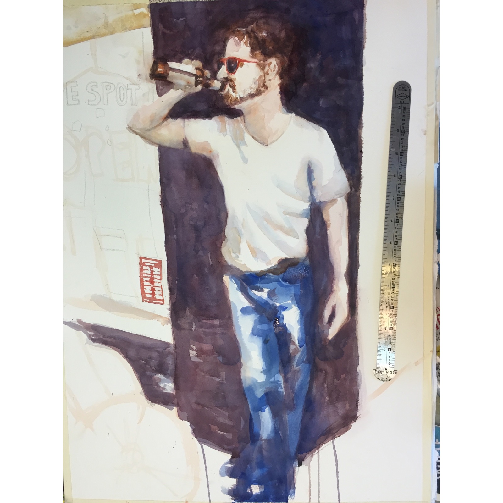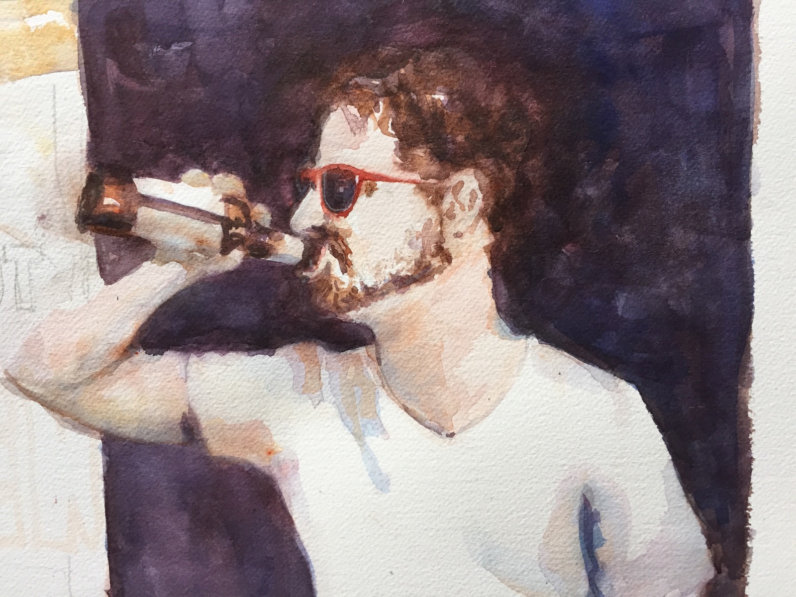Ok so I cheated and got out a watercolor pencil because I was getting so frustrated with the head.  The light purple areas around the head are where I narrowed the head. I also ended up lifting the beard and the sunglasses.