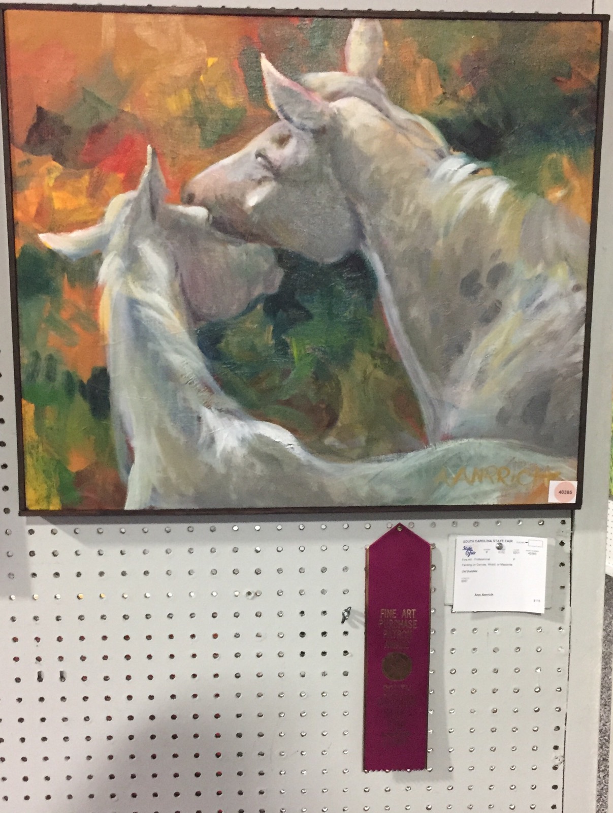 Brushes were 1/2 hog bristle and a 1/3″ filbert and a cheap house painting brush for the background. THe house paint brush is the kind that sheds hair…you get about 8 of them for a few dollars at michaels or lowes…great fun to paint with.