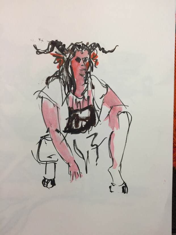 I have had…or should I say 24 hours?? ALL my iphoto pics disappeared around 11 pm last nite and my iphone died today…supicious I have a virus…guess I will download some antivirus…but in the meantime its day 471 and I have to post a blog dont I??? As you know its Saturday…which means life modeling at USC Aiken….I had originally intended to go urban sketching downtown but did not feel up to it with the bronchitis I have had…hmmm do you think my computer caught it???