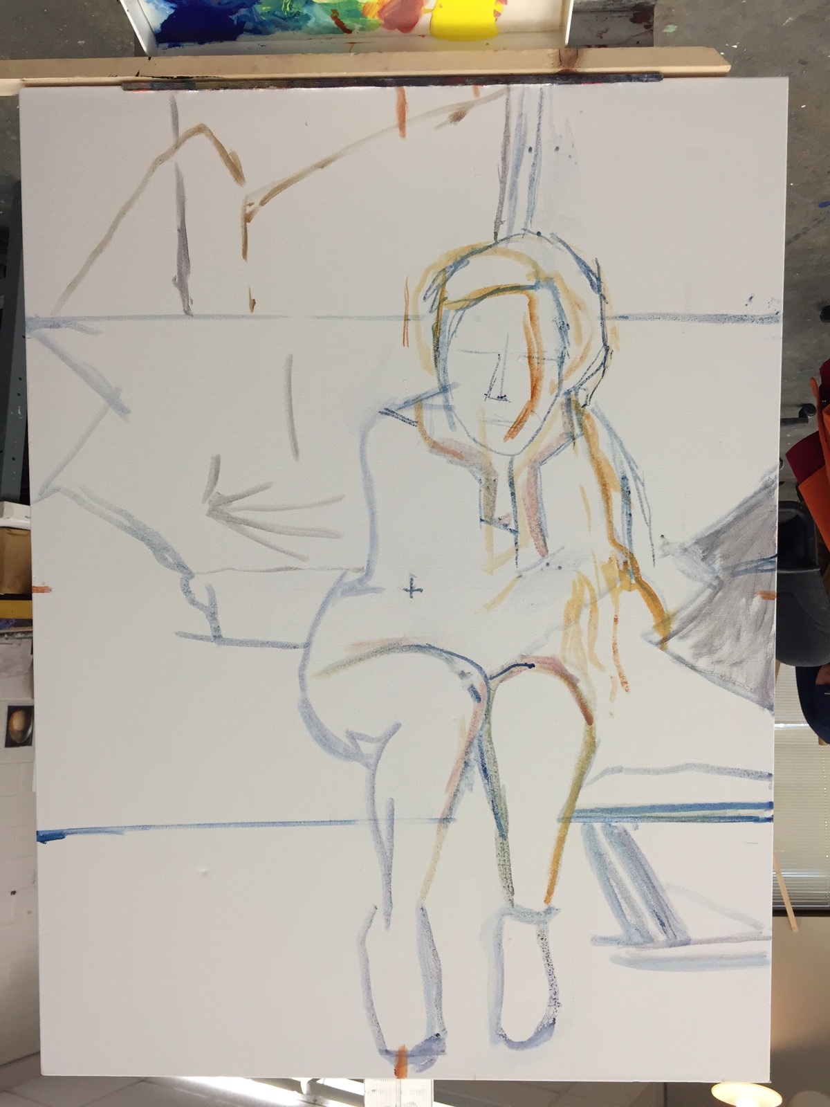 Blocking in is the start of a painting. Why he direction it will go gets started. It’s a thin layer of acrylic paint and it’s done for either a finished acrylic or oil painting. I thought you might like to see the process.