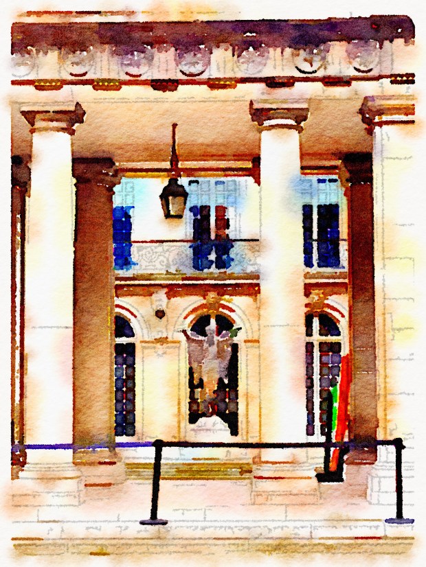 On the I planned what I would post. Two pieces of software- Waterlogue and Photoshop Express. I have them on my iPhone and my iPad. I think they are both FREE which is always a plus.