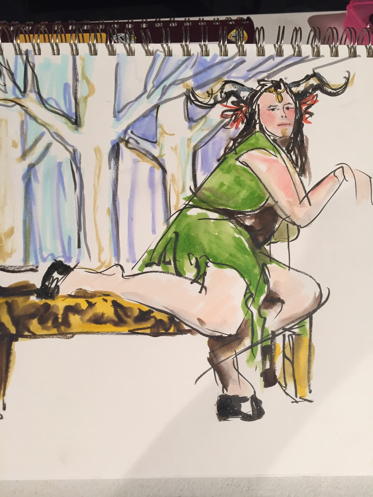 I use the Tombows a lot at Dr Sketchys. This is the first Dr Sletchys I did with the WN watercolor markers. I think they were up to the challenge. They really blend out well. Very forgiving.