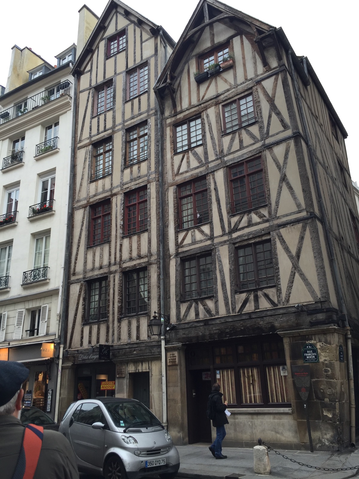 One of the oldest buildings in the Marais. A half timber building much more typical of Rouen than Paris which was rebuilt after the third revolution of Les Mis fame with its sweeping boulevards.