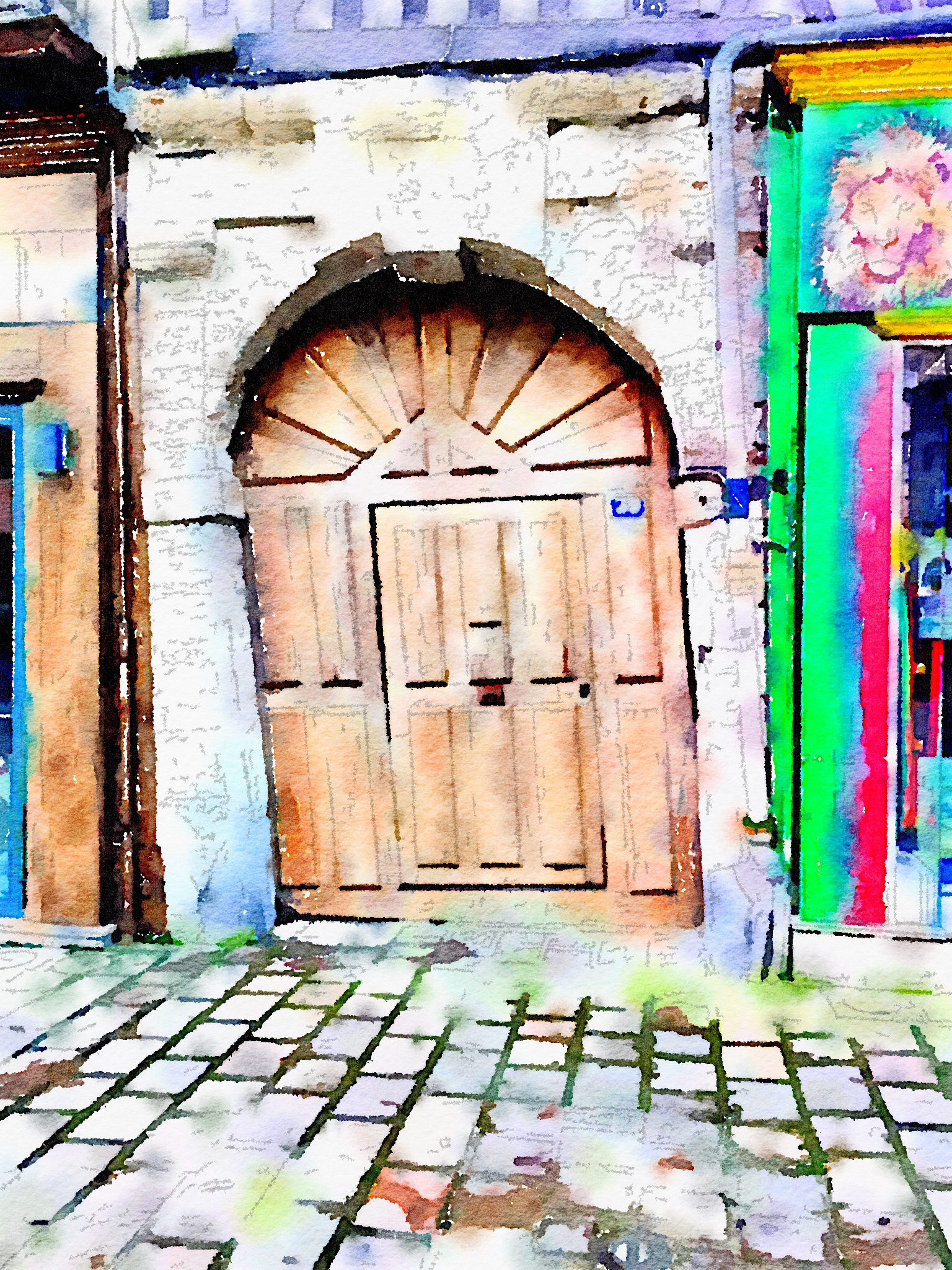 A door a couple of houses down from the leaning building. That lean must be so contagious.