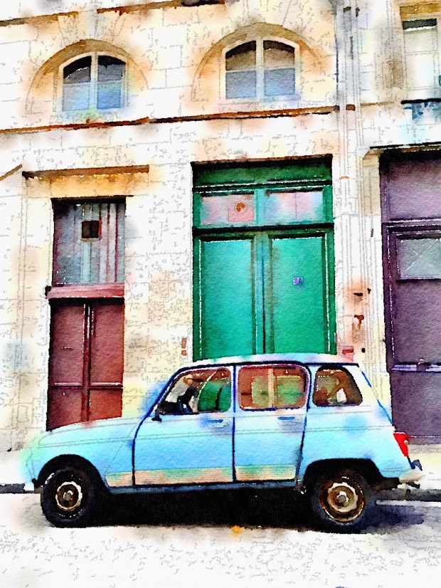 Where else would you find this charming old French car parked in front of that awesome green door. Not in America who we need everything brand new.