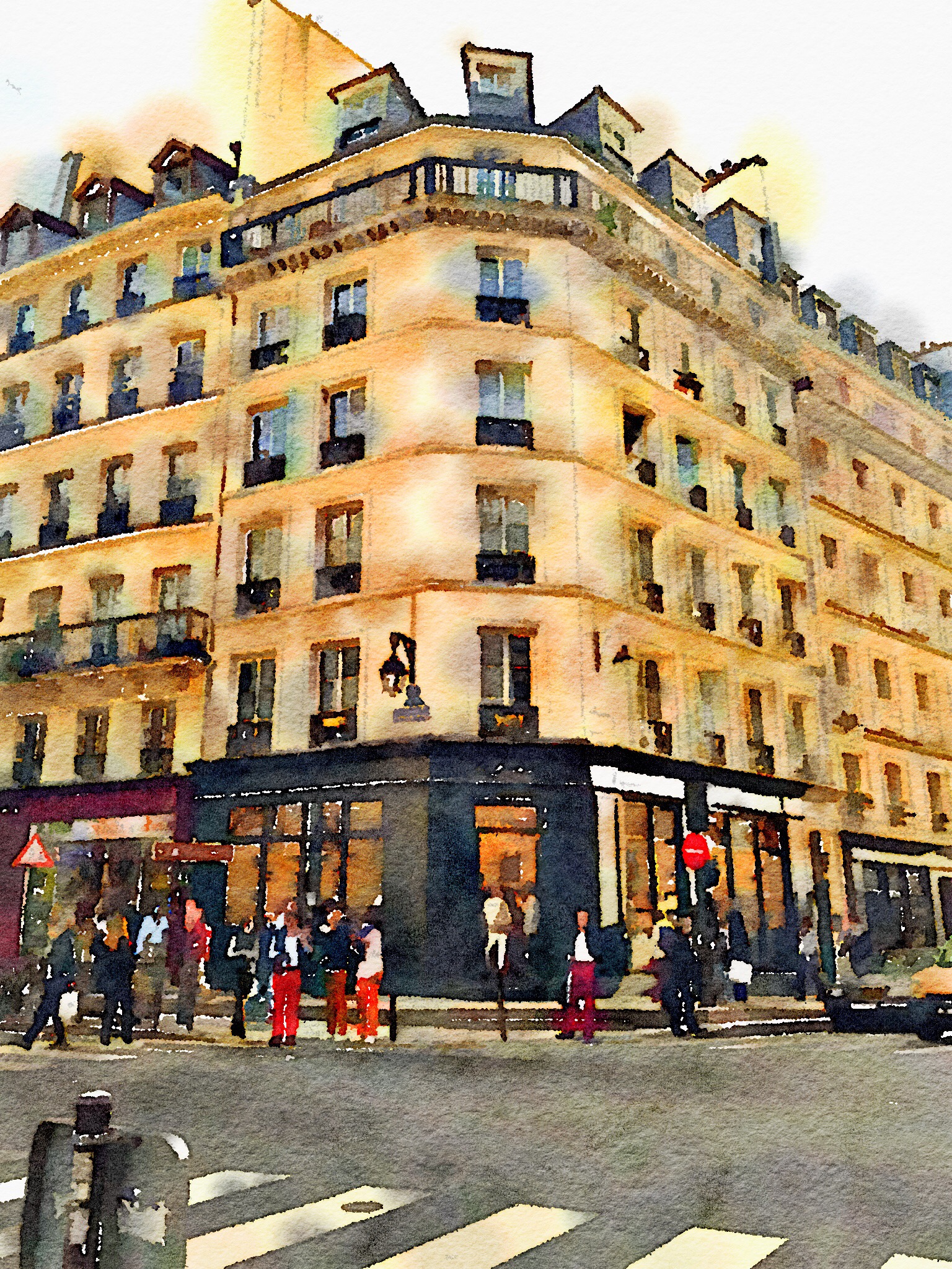 I also turned quite a few buildings around to face the viewer like Carnavalet and the Jewish école (school) on Francois Miron.