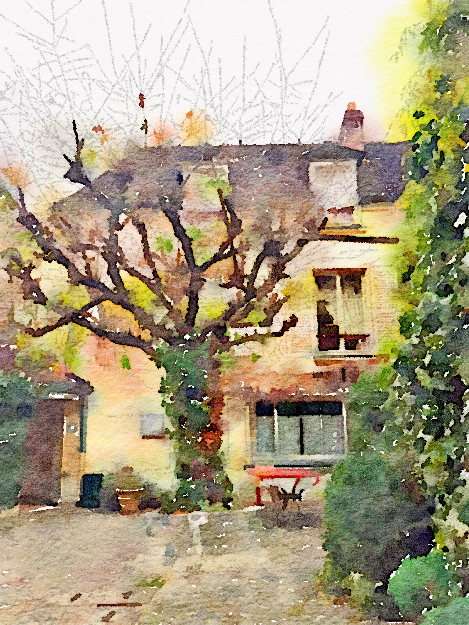 The last sad home of Van Gogh the auberge or Ravaux Inn in Auvers. This is the back yard he painted some of his last 70 paintings in his last three months of life. The sad tiny garret he died in is at the head of the stairs under the roof peak. A room so small a bed and chair barely fit. It would have been unbearably hot in the summer.