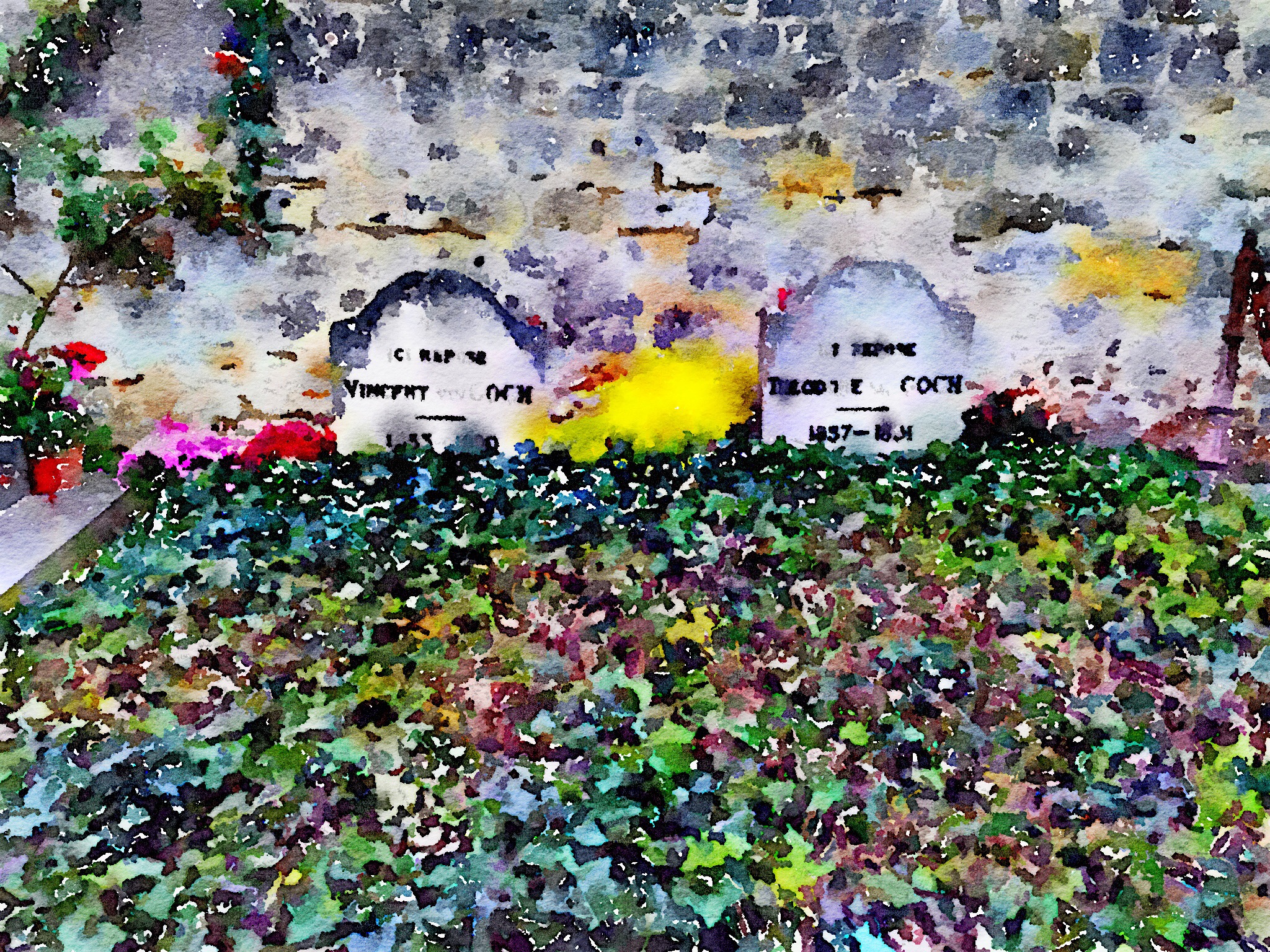 The graves of Vincent, 37 yr, and Theo Van Gogh, 33 yr, in the Auvers cemetery. Dead within six months of each other.