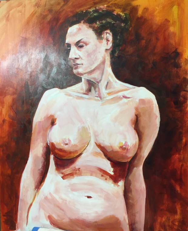 Of course I lightened the background w a dry white and cobalt blue. It helps soften some of her edges. Probably could do more but I am leaving her alone for now.